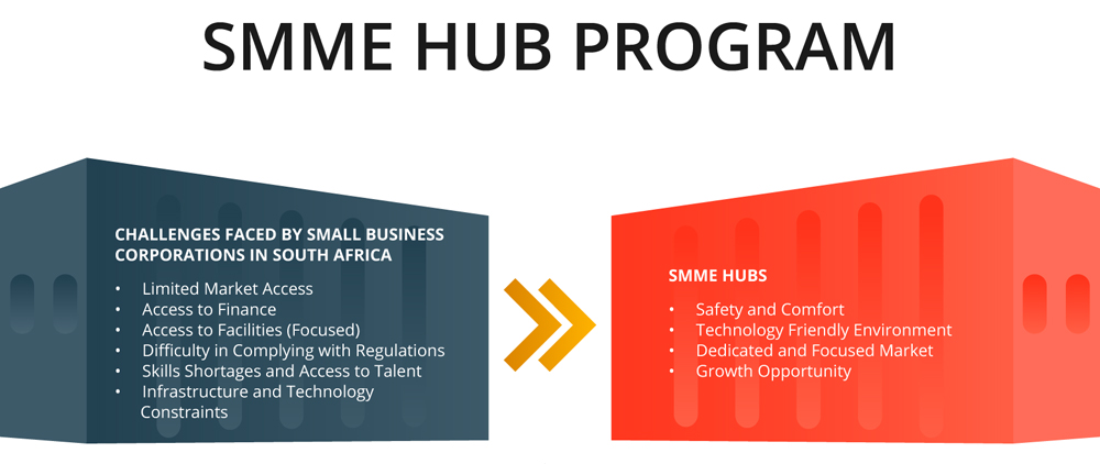 The SMME HUB PROGRAM is an Economic Empowerment Program with an emphasis on providing a safe, comfortable and affordable space for Small, Medium, and Micro Businesses (SMMEs). This program is aimed at fostering job creation, skills development, SMME and economic development and more importantly, supporting township economic development within the South African construction industry.